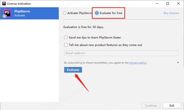 7、运转软件后,点击激活窗口的Evaluate for free不花钱试用。