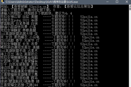 超清4k壁纸批量爬取工具bizhi.exe虽然提供的是命令行界面,但是不懂代码的用户也能在文字引导下进行壁纸资源下载。它支持从壁纸网站中高效下载大量4K超清质量的壁纸,之后用户可以将它们用作壁纸自动切换的素材。