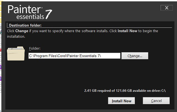 【默许途径C:⁄Program Files⁄Corel⁄Painter Essentials 7⁄】