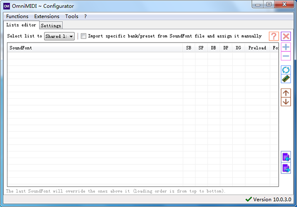此程序需要计算机安装.NET Framework 4.0或更高版本。它允许用户导入和编辑MIDI列表,从SF2文件导入预设方案,支持保存多个不同的列表,并且允许在这些列表间快速切换。您可将列表自由分配给指定的声音程序,并能自行规定默认的MIDI输出设备。