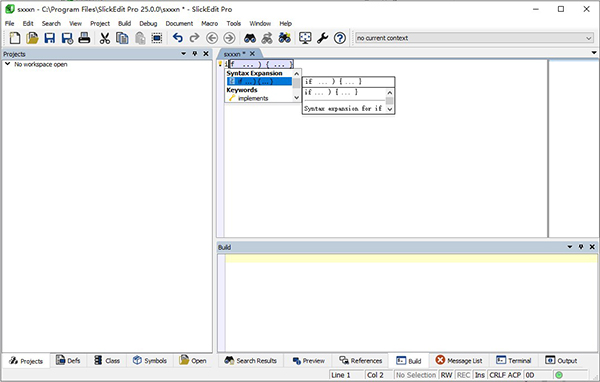 SlickEdit拥有强大的多语言代码编辑器功能,并为程序员提供了带选项的编程环境,极大地方便了代码项目的创建、导航、修改、构建和调试。它具有上下文标记功能,程序员可从符号深入到定义,不用搜索就可以快速找到所有引用。