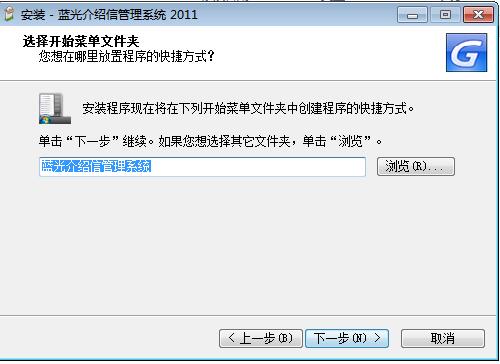 4、选择起头菜单文件夹的装载途径,完成后点击下一步