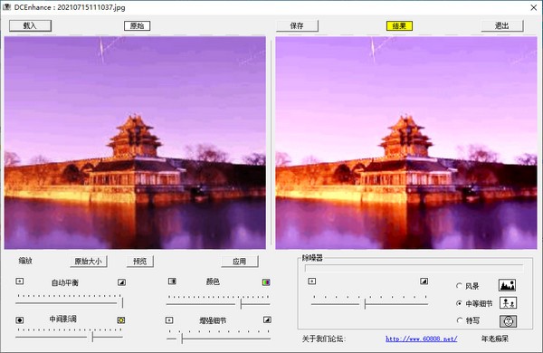 Digital Camera Enhance程序应付平时的图像处理真心足够了,毕竟整体的画面也比较适合进行前后对比服务,迅速找出当前画面的违和部分之处,同步调节好噪点在画面上的分布态势,并形成整体画面的绝佳工作特性,感受不一般的画面平衡操作。