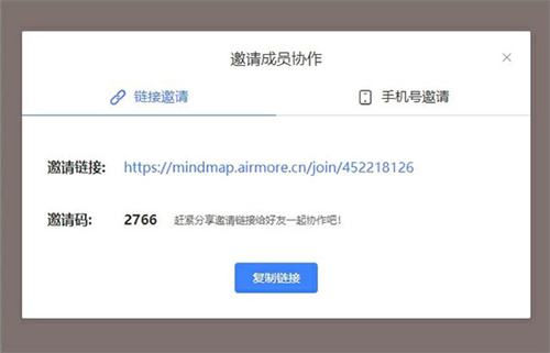 可以经由两种技巧来约请:一种是链接约请,点击复制链接将链接及约请码发送给同事/小伙伴。