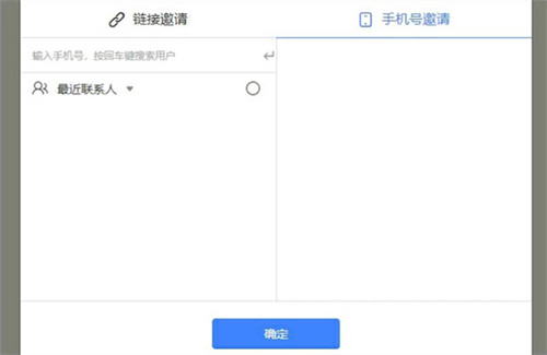 另外一种是手机号约请:输出同事/小伙伴的手机号,按Enter键搜刮用户名,找到以后,点击肯定,就成功约请对方协作了。