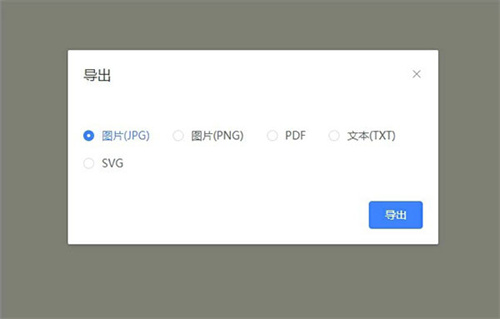 爱莫脑图供给了多格局导出思惟导图,包罗JPGPNG图片、PDF文件和TXT文本,导出方式也很易懂,点击屏幕右上角的导出按键便可。