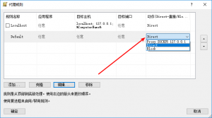 代办署理法则窗口下,重置Default法则的举措为Direct,这里是全局代办署理设置,若是你要全局代办署理,可以选择响应的代办署理。
