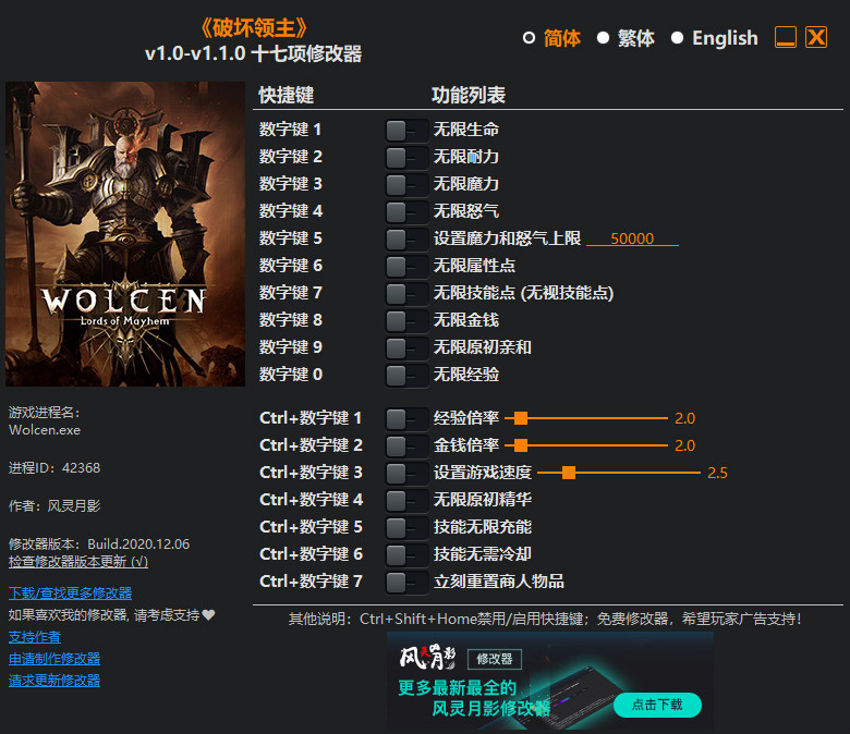 破坏领主十七项修改器风灵月影版