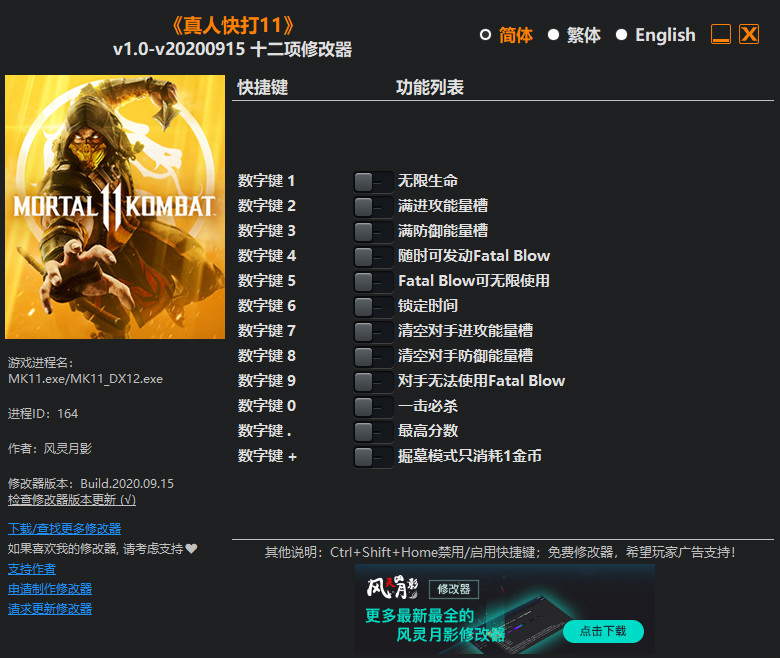真人快打11 十二项修改器风灵月影版