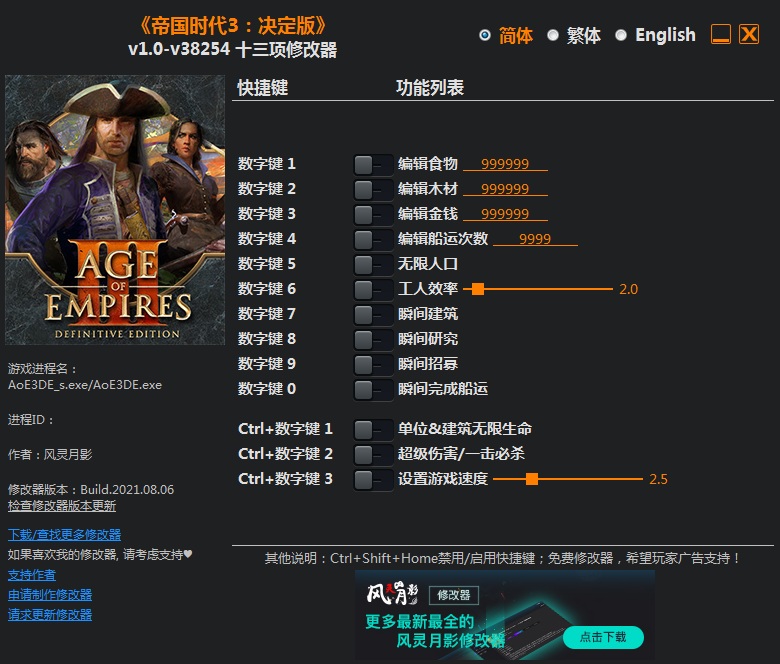 帝国时代3:决定版十三项修改器风灵月影版最新版