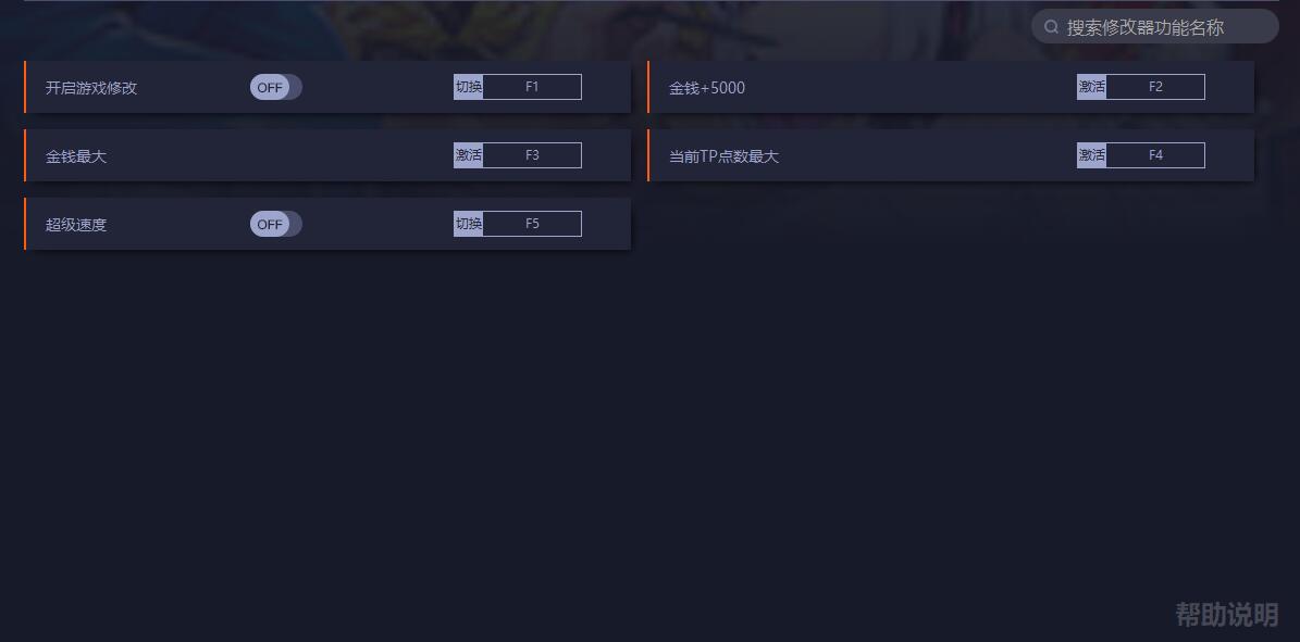 3.开启修改器各主初始项再使用各子修改项[无主初始项则不用开启][主初始项:如开启...修改]。