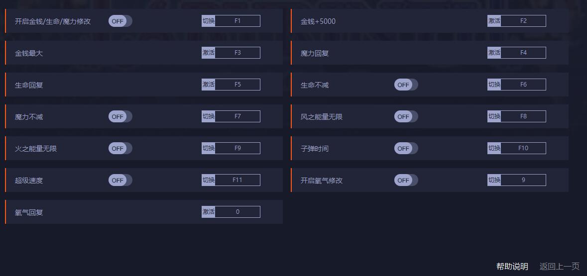 2.开启氧气修改:开启后,进入水中出现氧气进行修改,氧气回复会给予较大氧气,下次重新换气还原。