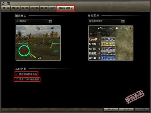 该工具可以在玩坦克世界时,向玩家即时提供对阵双方的战斗力表现,便于做出下一步战斗部署,而且它能够把玩家视角最多放大16倍,更清晰地查看对方的部署情况,从而提高胜率。此外,它可以一键开启游戏无声模式。