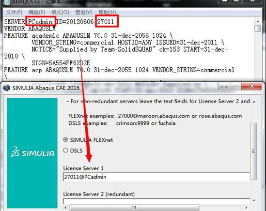 8、以记事本技巧翻开答应文件ABAQUS.lic,将端口和电脑名输出到装载场景布局中,格局为27001@电脑名,如27011@PCadmin,点击下一步主动认证
