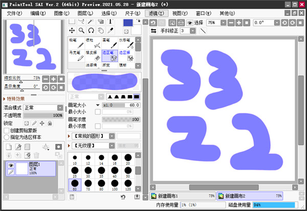 起首,翻开电脑上已装好的SAI软件,并新建一个随便大小的新画布;