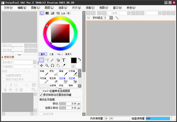 PaintTool SAI Ver.2 2020供给笔、曲线、线条、橡皮擦、编纂途径、编纂压力、更改色彩和更改权重工具。