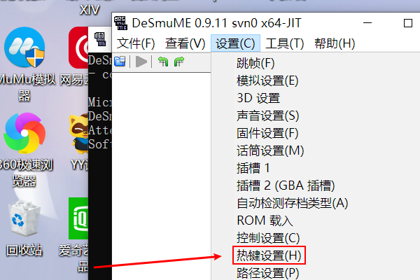 Desmume加快键设置,需求在热键设置中更改。