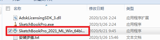 2.解压并翻开SketchBookPro_2021_ML_Win_64bit_dlm.sfx.exe文件