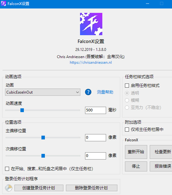 FalconX是整体电脑桌面的背景壁纸或者主题桌面的布局优化设置软件,可兼容七代版本和现在通行的十代版本,启动后在本地素材库中选取自己满意的主题底层素材,其他的就是动画样式,速度,位置,任务栏样式,各种软件程序登录计划等等,这些内容都会尽量去保证桌面的结构符合用户既有思路。