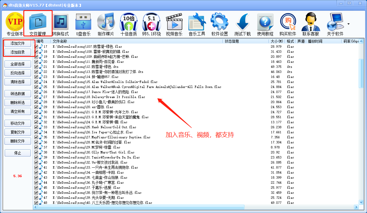 批量检测音乐文件编码格局、码率、采样率、位数、声道数目等;检测成果100%准确无误。