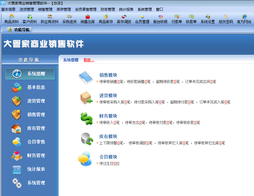 大管家贸易发卖办理软件首要性能导航模块: