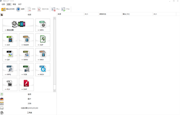 连续点击开启格局工场,场景布局很是的清新,我们可以看到,格局工场不单可以转换视频,另有音频图片,光驱产品,乃至另有视频归并和音频归并,可谓是麻雀虽小,五脏俱全。