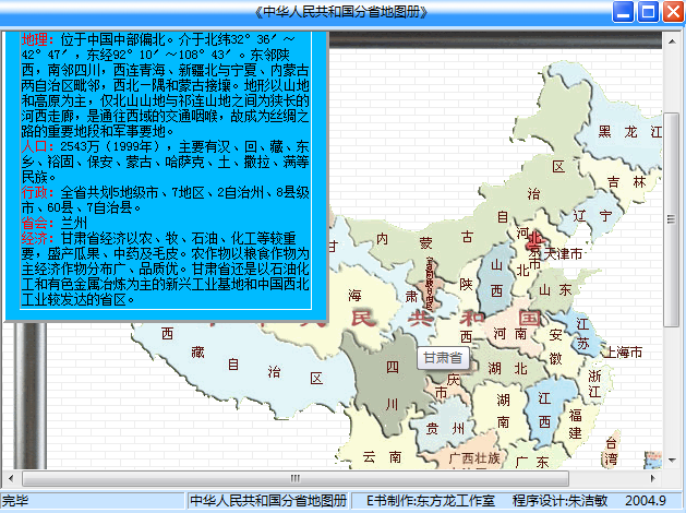 2、周全。该软件对中国的每个省分和地区都做了一个易懂的引见:地舆定位环境、生齿、经济、政治等身分。让看的人对此有一个根本的领会!