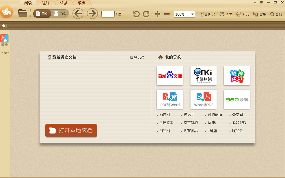我们翻开极速pdf浏览器,熟悉一下这个软件。如图:场景布局看上去很是的柔和,具有护眼的功能,很是贴心!