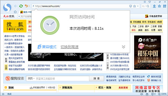 搜狗高速阅读器拥有“高速形式”,可以较着晋升网页拜候速度,少少数的一些网站临时还没有很好的拥有这类形式,您可以经由点击地址栏网址左边的“闪电图标”,将其切换成“兼容”形式来处理成绩,您切换后,此次切换的选择将被主动影象,下次您拜候同一个网页将主动运用“兼容”形式。