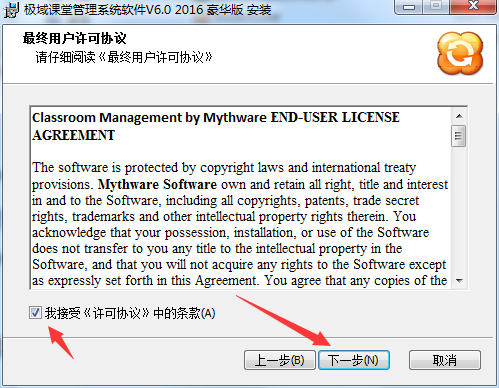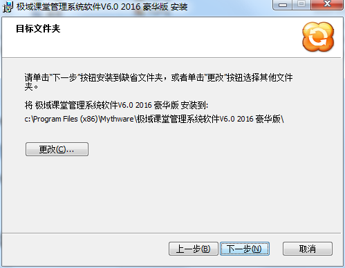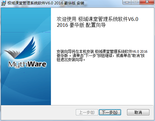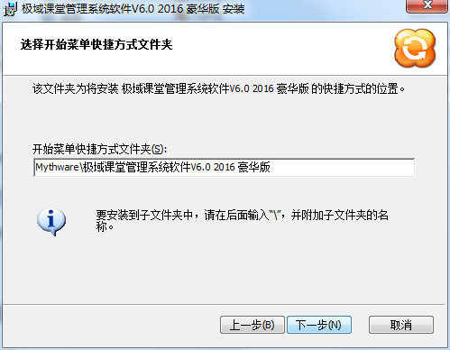 6、选择软件起头菜单文件夹,默许的文件夹Mythware极域讲堂办理系统软件V6.0 2016 奢华版,点击下一步;