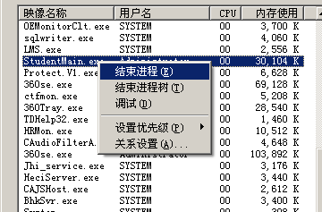 2、右键菜单栏,翻开义务办理器,右键选择StudentMain.exe历程,选择竣事历程。