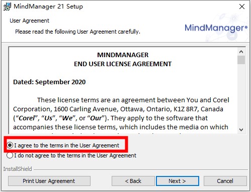 2、双击运转MindManager 21.msi装载原顺序,勾选装载契约。