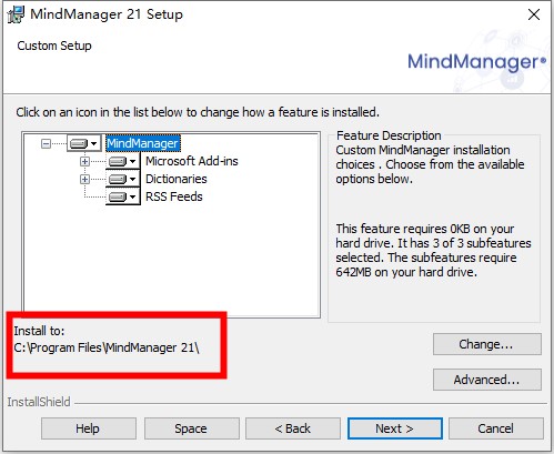 默许途径:【C:⁄Program Files⁄MindManager 21】