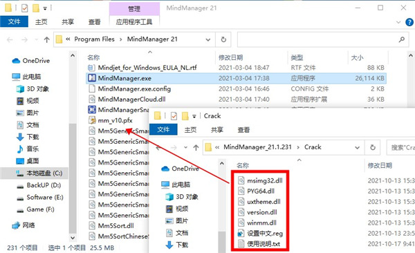 1、在本站下载并解压,获得mindmanager21装载包和补钉crack;