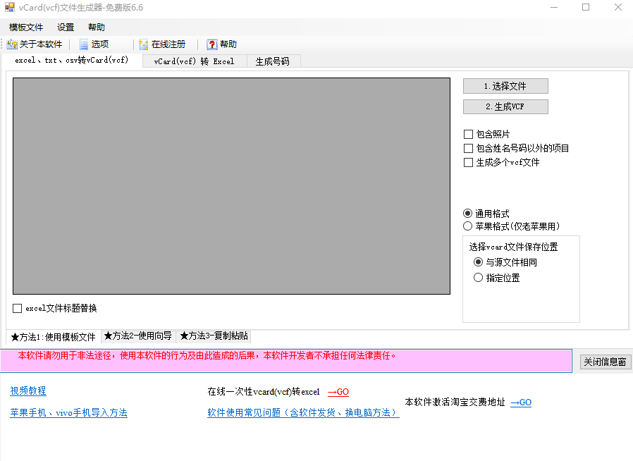 vCard vcf文件生成器具备充足的vcf文件格式一键转换同步能力,格式会融入进度多数文档格式的属性,手动确认模板文件信息,这样后续去除有内容的部分,就能批量印制,整个页面支持快捷演示格式转换的作用,另外就是单元地址这块全面有效形成格式上的快捷优化,尤其是单元地址服务上有了更多的变化程度。