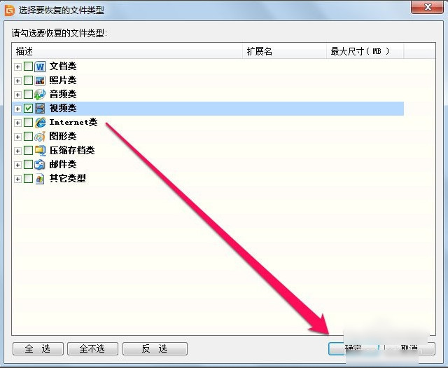 3、运用diskgenius选择好恢复文件的类型后点击肯定。