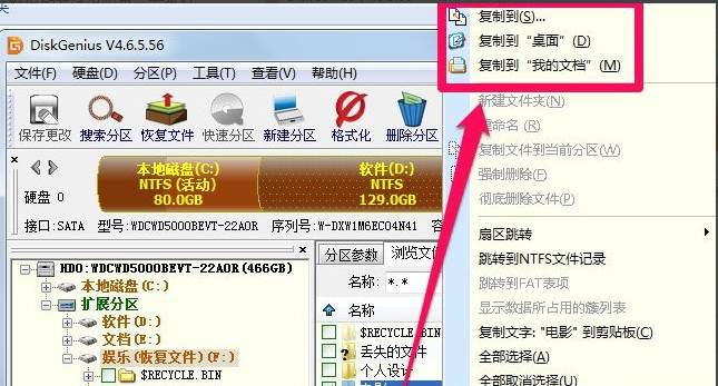 5、运用diskgenius查找出误删除的文件后我们可以选择需求恢复的文件,然后右键单击复制到指确认地理位置置便可以了。