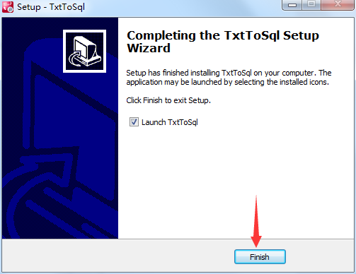 提醒您TxtToSql已装载成功了,点击finish加入