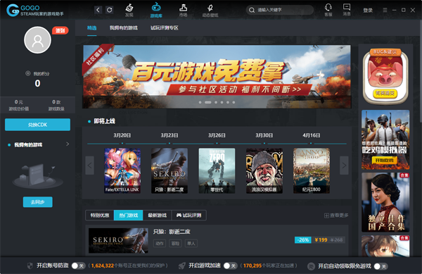 GOGO隶属于steam平台的辅助性工具,首先连接官方平台全方位获取最新的游戏资以及价格,上面还有各种新作的发布日期,从对应游戏的准确度来看没有问题,同时对应相当多的平台数据服务做好内容规范以及真正省钱的技巧操作,当然市场服务也会有效跟踪,此前还支持游戏提速服务。