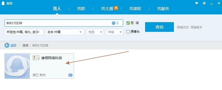 在框内输出客服QQ,点击查找操控键位后页面展示查询成果,点击褚相收集科技,弹出褚相收集科技内容展示框