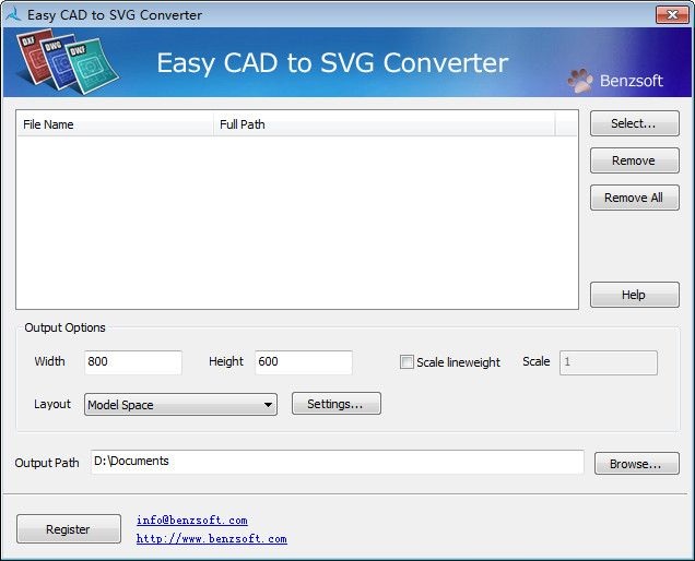 Easy CAD to SVG Converter支撑CAD大类文件与SVG格式之间相互转换,给图纸设计人员提供方便,实际操作同其他同类软件不相上下,先获取本地文档存储路径,随后选取适宜的文件内容,并且多加注意平台项目之间的多层次防护,以更快确认好一众平台内容的优秀输出标签,内容保护完整。