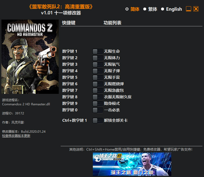 盟军敢死队2高清重制版十一项修改器风灵月影版