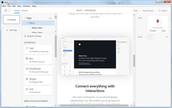 Alva Canary是一款运用代码组件建立日常原型工具,应用代码组件建立原型原本就是高难度的工作,没有辅佐软件的确吃力劳神,而Alva Canary却可让这类工作变得更易懂,Alva Canary许可用户基于开辟人员设计的组件设计交互式产物,可以把设计草图加入到原型中,很是给力
