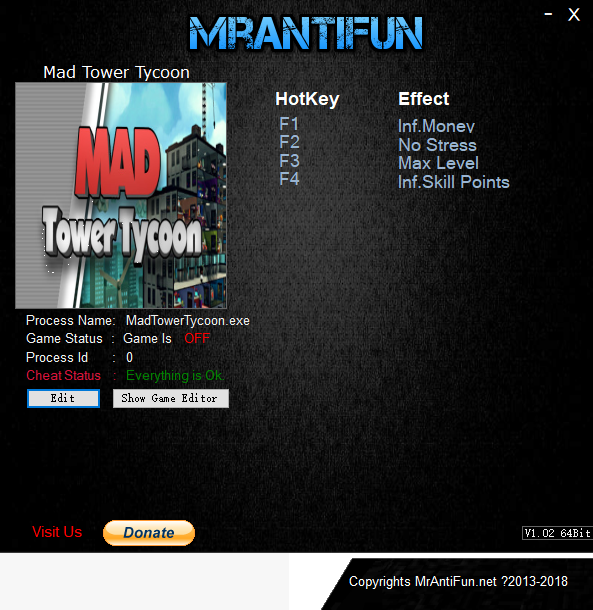 以上就是关于疯狂高楼大亨四项修改器MrAntiFun版的全部使用说明了,如果你还想要各种性能强大的相关游戏辅助软件就快快在游戏爱好者网站寻找吧!