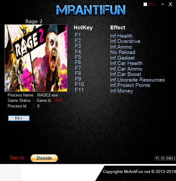 喜欢小编为你带来的狂怒2十一项修改器MrAntiFun版吗,喜欢的话就快来游戏爱好者逛一逛吧!让你能够发现更多精彩的内容,小编还会为你提供更多相关的游戏辅助软件,让小伙伴们就算不是游戏大神也能够肆意享受游戏乐趣。