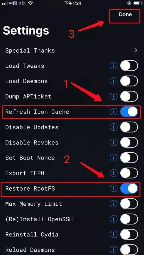 找到Refresh Icon Cache和Restore RootFS选项并翻开。
