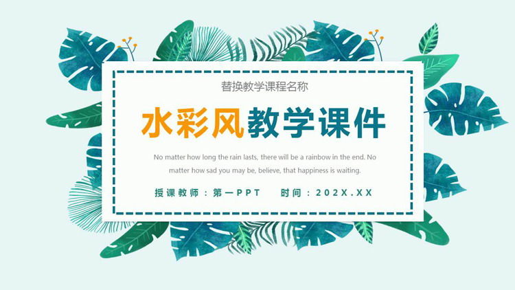 一套清新绿色水彩叶子背景教学说课PPT模板