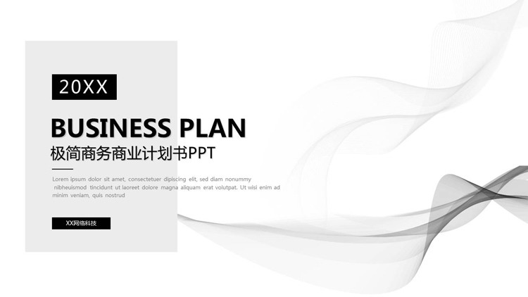 黑色与灰色搭配,显得更正式,带有较为严肃的气息,整体看上去更贴合商务这一风格,更适合用在那些较为正式的场合,用在职场上更合适。黑色极简抽象曲线背景商业计划书PPT模板使用一些较为抽象的线条进行修饰,显得更灵动,在严肃之中带有一丝活泼。