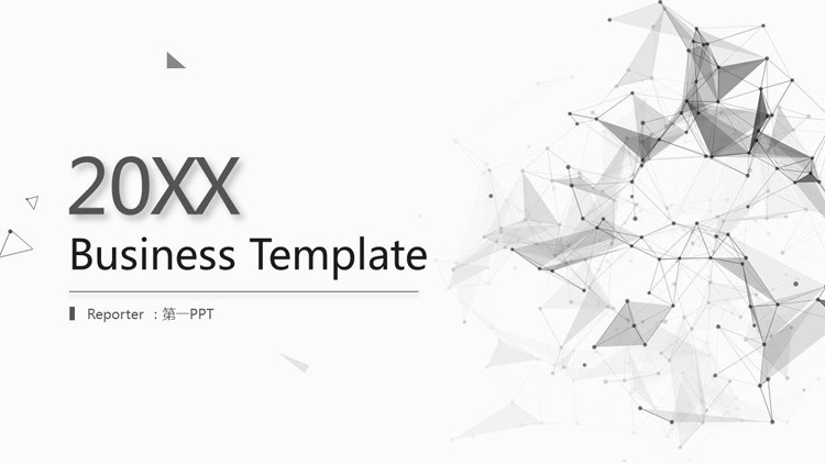 背景颜色大多为灰色与黑色,显得更深沉,整体看上去显得更严肃,也显得非常稳重,非常适合用在那些较为正式的场合,整体看上去更显庄重。简约灰色点线多边形商务汇报PPT模板使用多边形与圆点修饰边框,整体更显灵动,不会显得那么死板,看着更灵活。