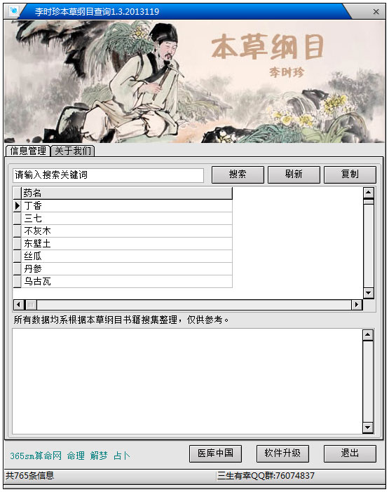 本草纲目作为中国药理学的知名著作之一,本着强化药房管理,界面插图信息使用情况甚至是常识内容的目的,因此也就整理了海量的中医知识信息,在软件自带搜索框区域选定特定药理还有药品原材料的关键词,点击搜索以后再匹配缩小范围,以促进细节医学知识的快速学习吸收。